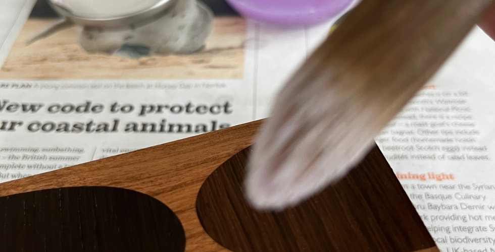 Making began on our return a couple of days later when Jonathan stepped back into the workshop the morning following a late evening drive back to Bristol. Kettle on, radio on, making then starts with selecting the veneers for the box tops, cutting the marquetry shapes by hand, assembling the designs and glueing them in place, permanently together. A traditional cabinet scraper is used to get an even finish, never easy when you're working with a natural material with grain direction to consider.